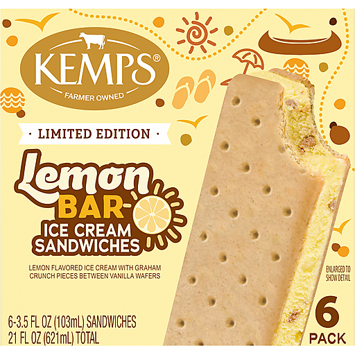Kemps Limited Edition Lemon Bar Ice Cream Sandwiches 6 pack